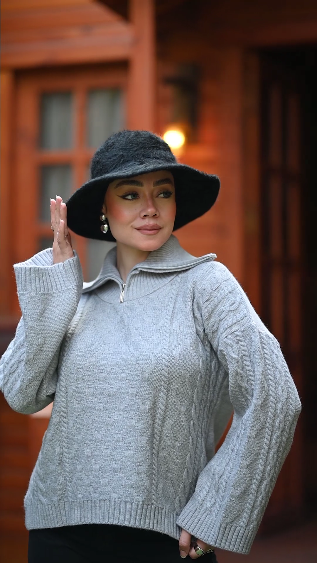 Overall, the sweater blends elegance and comfort, offering a cozy yet stylish look perfect for cold weather.
