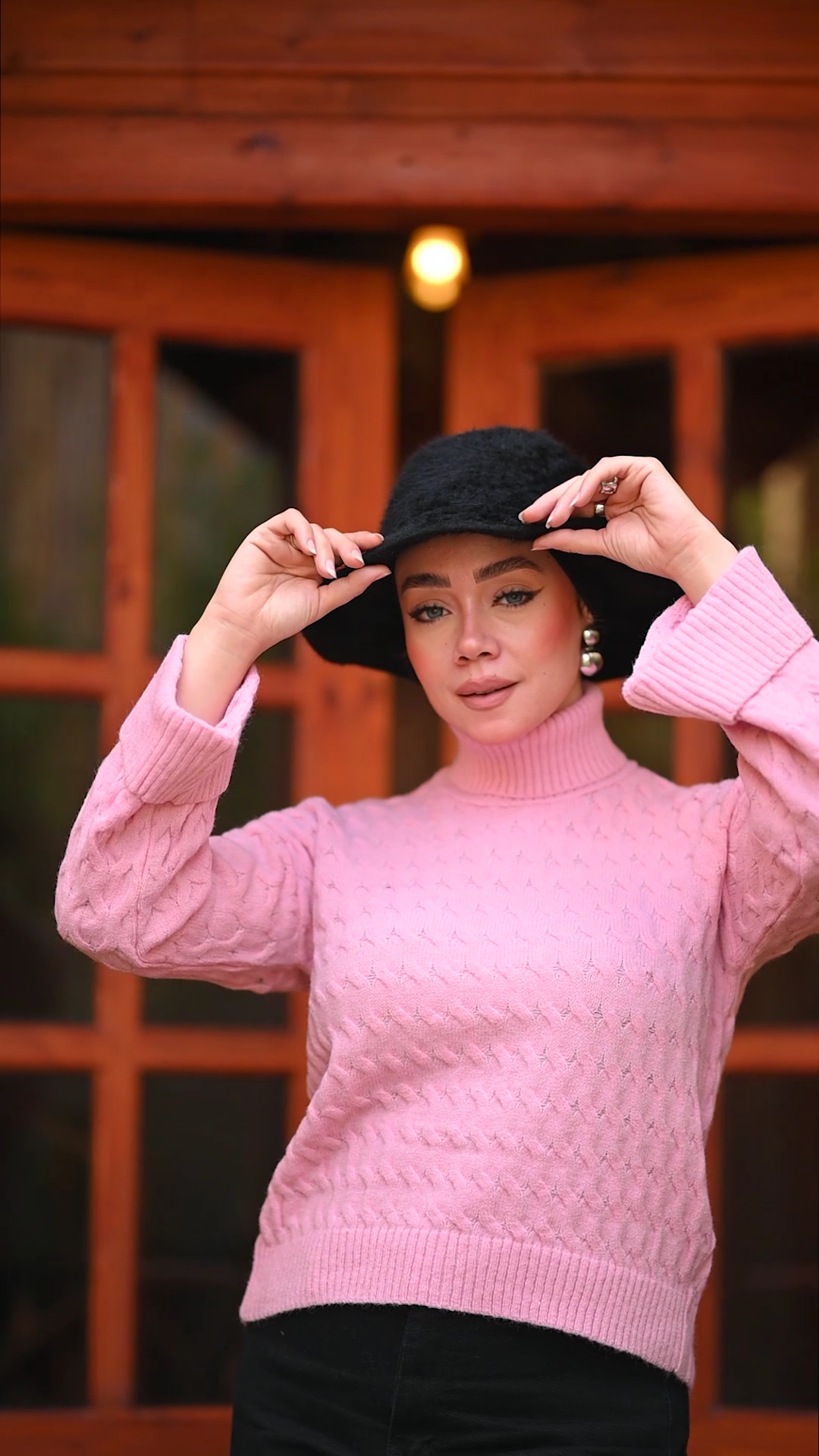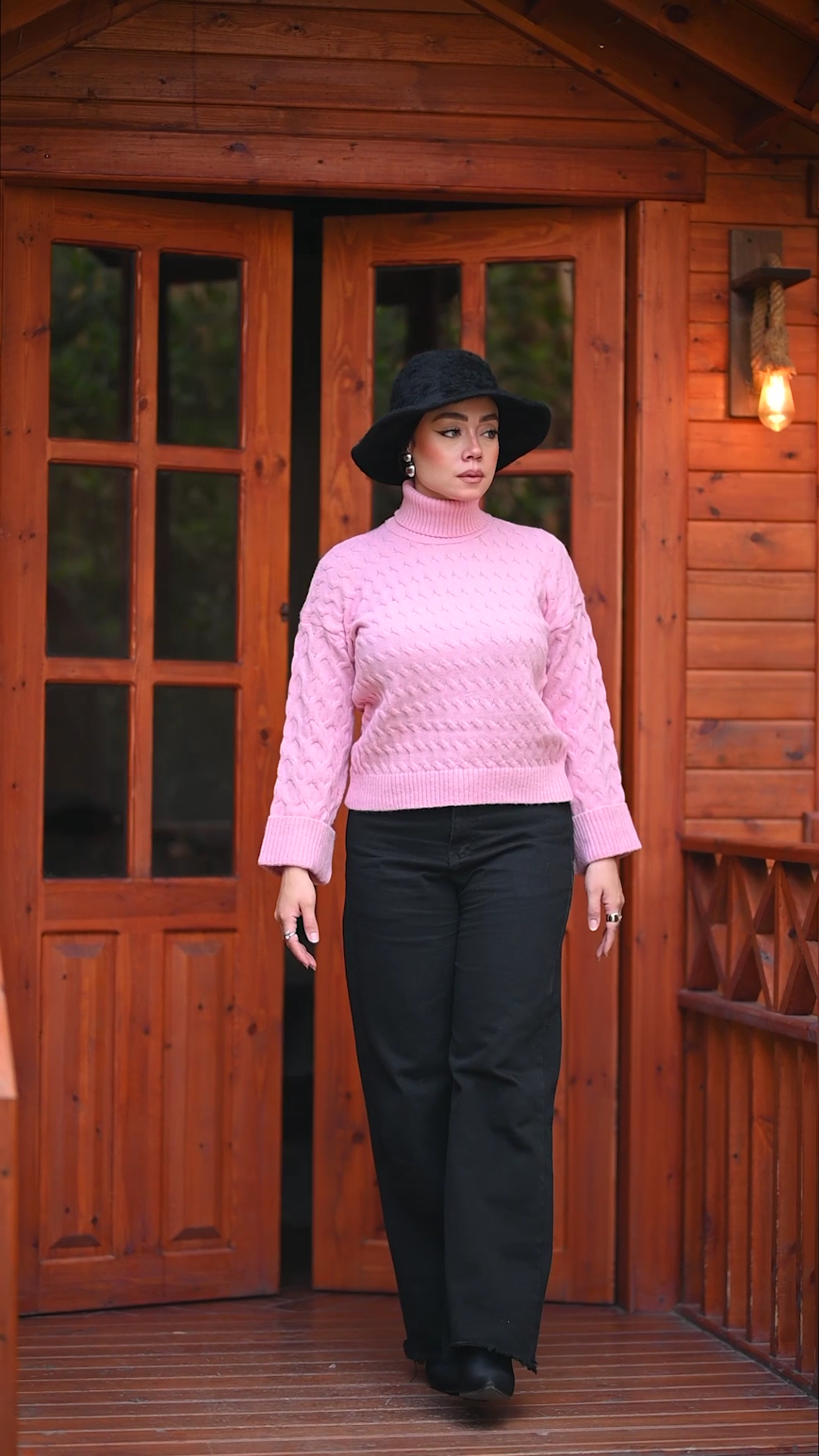 Overall, this pink sweater combines coziness with refined details, making it both comfortable and stylish for colder seasons.